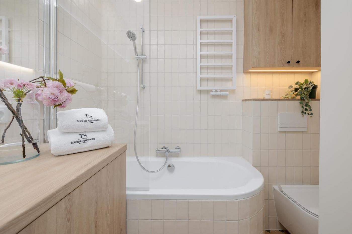 Apartament z 1 sypialnią. In the kitchen, guests will find a stovetop, a refrigerator, a dishwasher and kitchenware. This apartment is air-conditioned and features a seating area with a flat-screen TV, a washing machine, a private entrance, a tea and coffee maker, as well as a wardrobe. The unit offers 3 beds. Apartament - 4 osobowy. Powierzchnia pokoju ok.: 45 mkw.