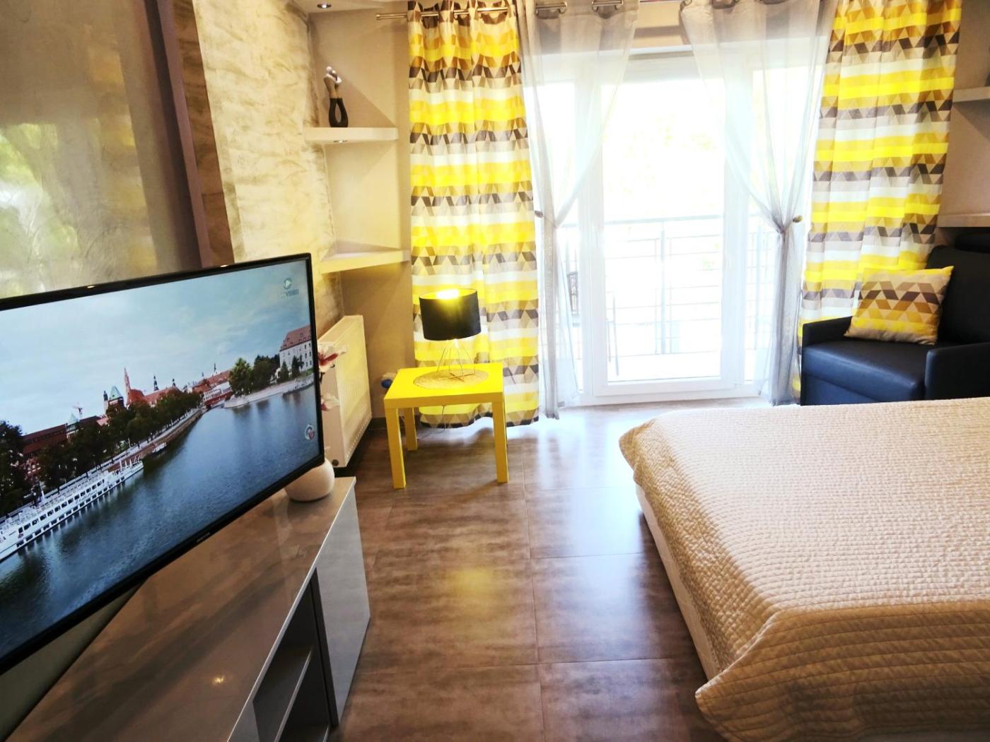 Apartament. This apartment is comprised of 1 bedroom, a kitchenette and 1 bathroom with a bath or a shower and a hairdryer. Meals can be prepared in the well-fitted kitchenette, which is fitted with a stovetop, a refrigerator, kitchenware and a microwave. Featuring a balcony with river views, this apartment also offers a tea and coffee maker and a flat-screen TV. The unit offers 1 bed. Apartament - 3 osobowy. Powierzchnia pokoju ok.: 28 mkw.